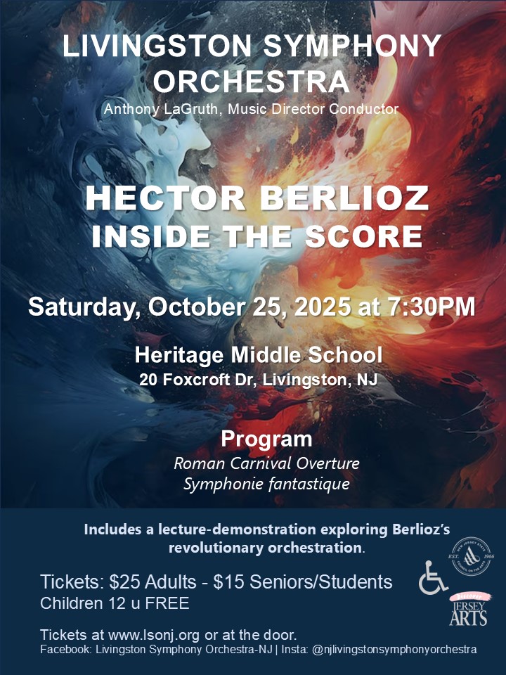 Please join the Livingston Symphony Orchestra for the first concert of our 2025-2026 Season! We will play two pieces by the revolutionary French composer, Hector Berlioz, and delve into what made him so ahead of his time.
