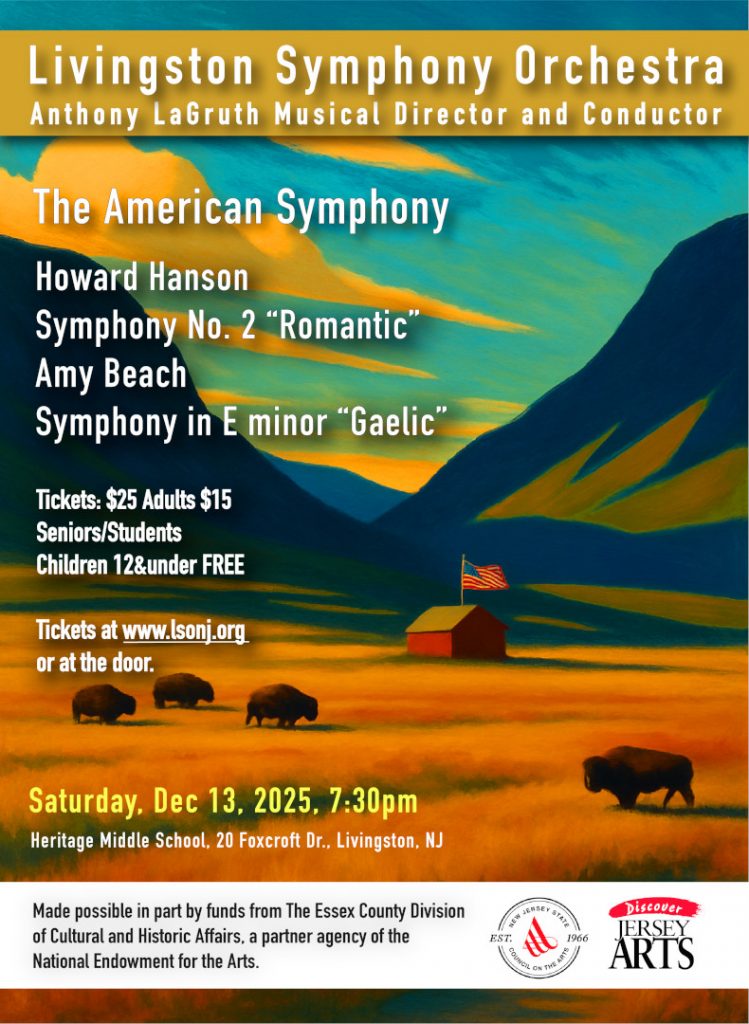 In the spirit of our country’s upcoming 250th birthday year, the Livingston Symphony Orchestra invites you to experience the exuberance of “The American Symphony” on December 13, 2025, 7:30 pm at Heritage Middle School, 20 Foxcroft Road, Livingston NJ.